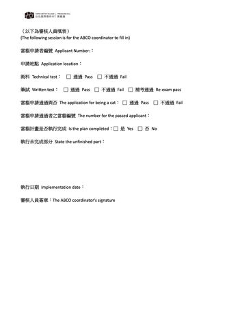 Applicants had to pass a technical and written test, and to fill out the application form. The ABCO coordinator would review the application and decide if the applicant was qualified. The qualified applicants could proceed to fulfill their plan.